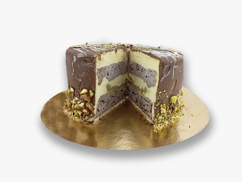 Ingredientes: Tarta de Chocolate Dubai Keto 100% harinas sin gluten, realizada a base de Huevo, Eritritol, Chocolate sin azúcar, Mantequilla, Pistachos Naturales, Harina de Almendra y Nata.